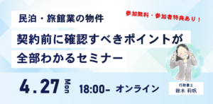 【参加無料】プロが教える「民泊・旅館業」契約前のチェックポイント徹底解説セミナー